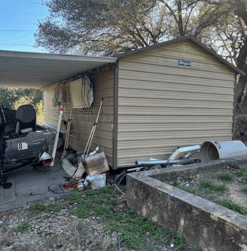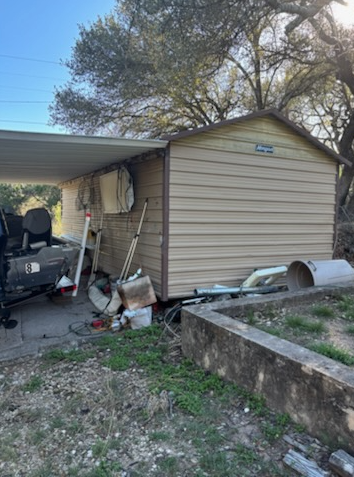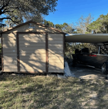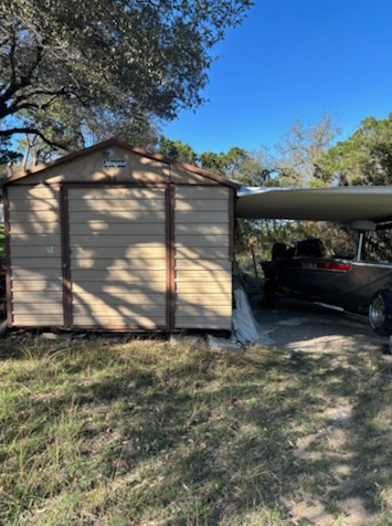 - Has a storage shed currently used for boat parking